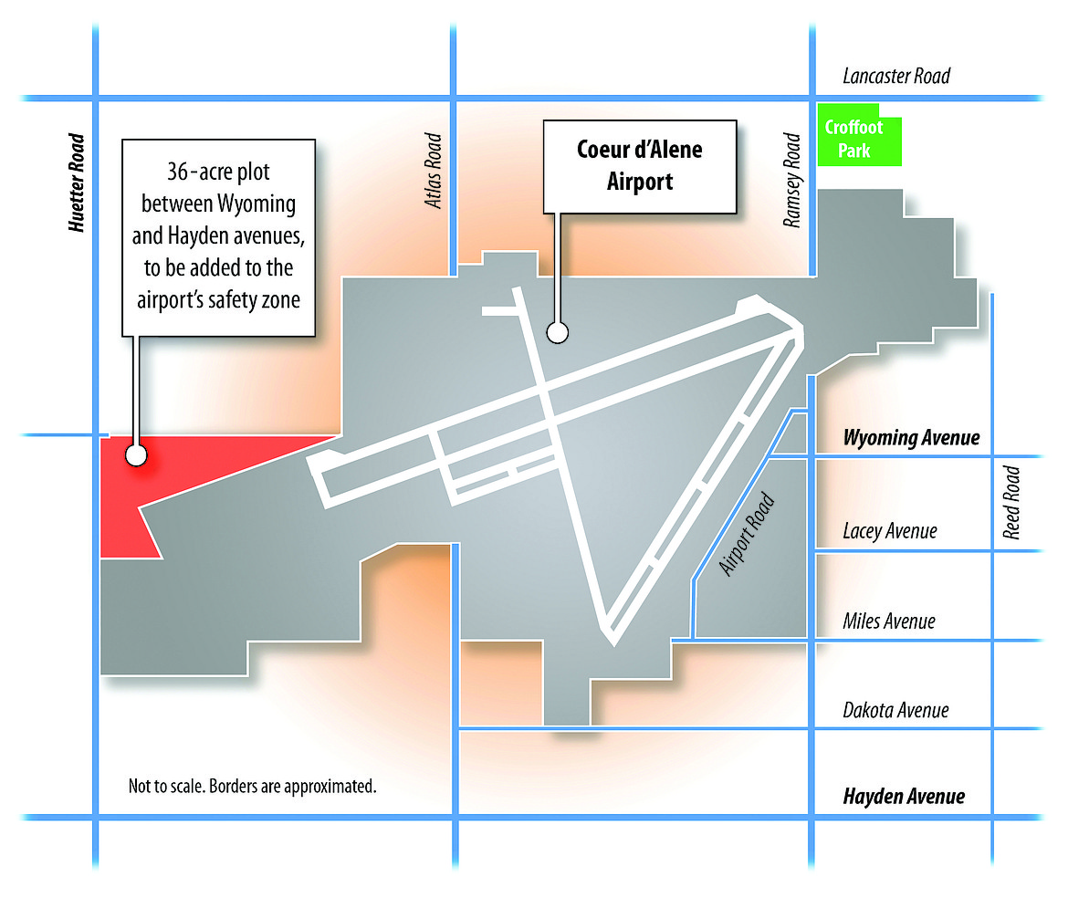 The county has purchased 36 acres for $791,000 east of Huetter Road between Hayden and Wyoming to protect a runway approach on the west side of the airport for safety purposes and restrict building in that area.