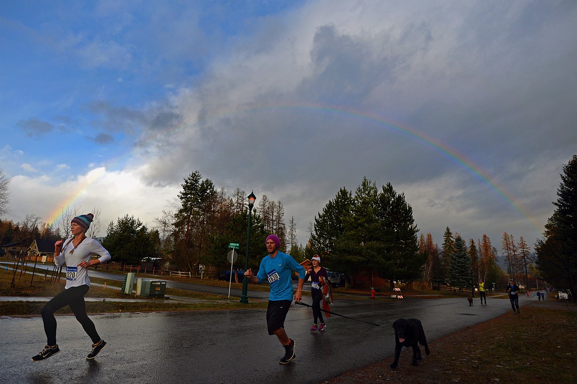 The drizzle eased, the temperature topped 50 and a piece of rainbow gleamed behind the North Valley Food Bank as participants gathered for the eighth annual Whitefish Turkey Trot.