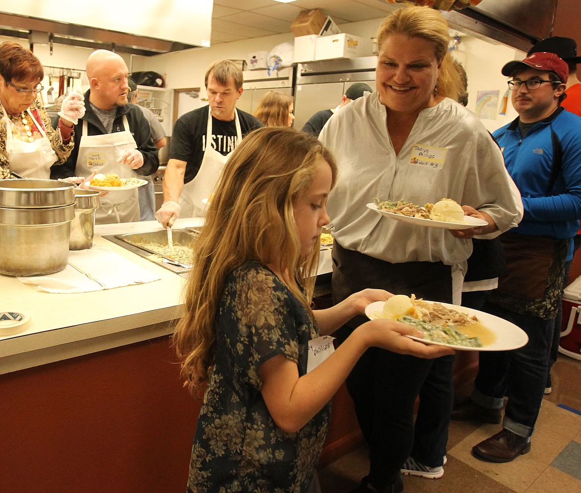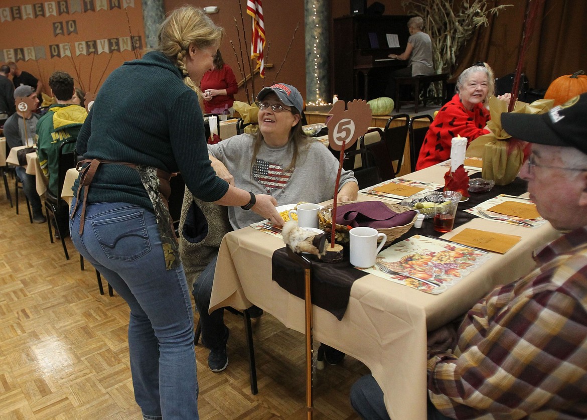 The volunteers who served as waiters and waitresses visited their tables to custom-order each plate for their guests. The servers asked if they wanted light or dark turkey meat, mashed potatoes, stuffing, green bean casserole and yams, and of course, how much gravy did they prefer?