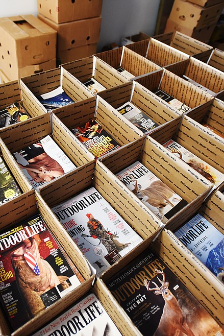 “GQ,” “Outside” and “Men’s Fitness” are among the most popular publication titles that fill flat-rate shipping boxes at Magazines for Troops’ Lakeside headquarters.