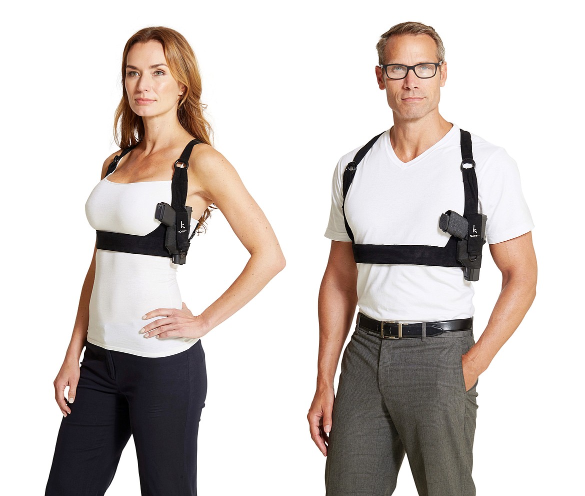The harness, which goes over the shoulders and around the torso, is designed for comfort and adjustment. The harness works with nearly any body type as it can be adjusted to allow the gun to sit higher or lower, depending on where it is most comfortable for the wearer. And the holster itself is universal as well, Wasylko said, as it can fit nearly any small to mid-size handgun. It can be worn outside of a shirt or, for women, Wasylko has a line of wrap-style shirts, which can be purchased on her website along with the holster.