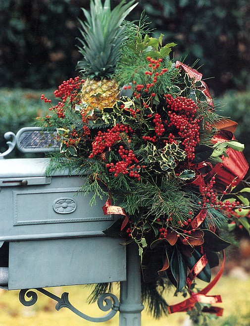 If you don’t have a pet-house to decorate, or even an old mail box, make do with whatever’s at hand to please both your visitors and the creatures that share your surroundings. A yard or porch-light — an unused watering can or bucket that can be filled with a pretty combination of greenery, bows and food items for the birds, squirrels - from the big grey (imported) fellas to the feisty little Pine-Jimmies and smaller-still Chipmunks (not to mention an occasional visiting raccoon or other opportunistic forager).