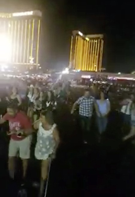 Concertgoers screamed and ran for their lives Sunday night outside the 44-story Mandalay Bay Hotel and Casino after hearing what at first sounded like firecrackers but turned out to be dozens of bullets in rapid-fire bursts, perhaps from an automatic weapon.