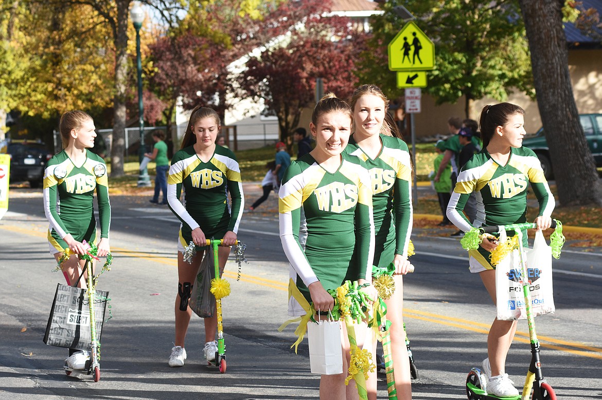 The Whitefish girls soccer team rides down Central Avenue during Friday’s homecoming parade. (Daniel McKay/Whitefish Pilot)