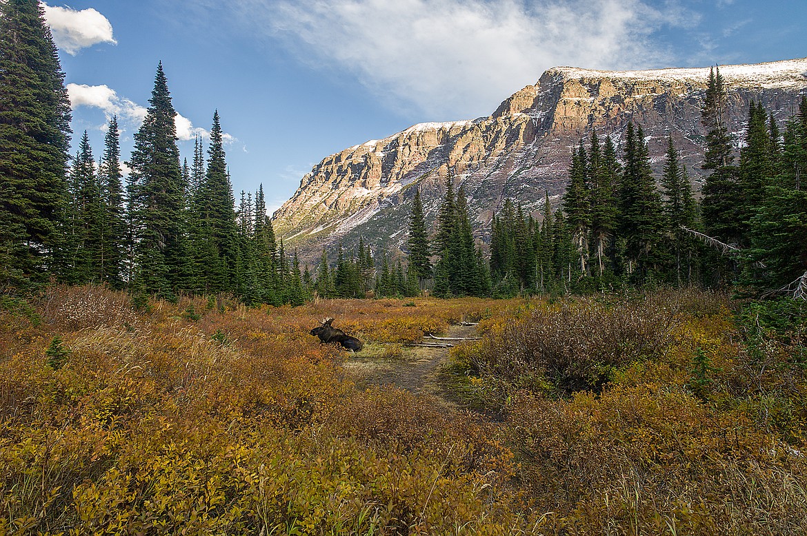 It was very much a moose trip anyway. Earlier in the day we saw and heard another bull serenading a cow. He wasn’t a particularly big moose and he had a fairly scrawny rack, even for Glacier’s shiras moose, which don’t, generally, have big racks anyway.