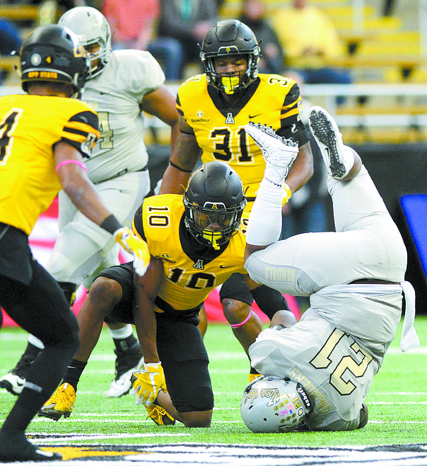 Kaden Elliss blocked the extra-point attempt following Appalachian State’s second touchdown to keep it a seven-point game. It was the first blocked kick of Elliss’ career.