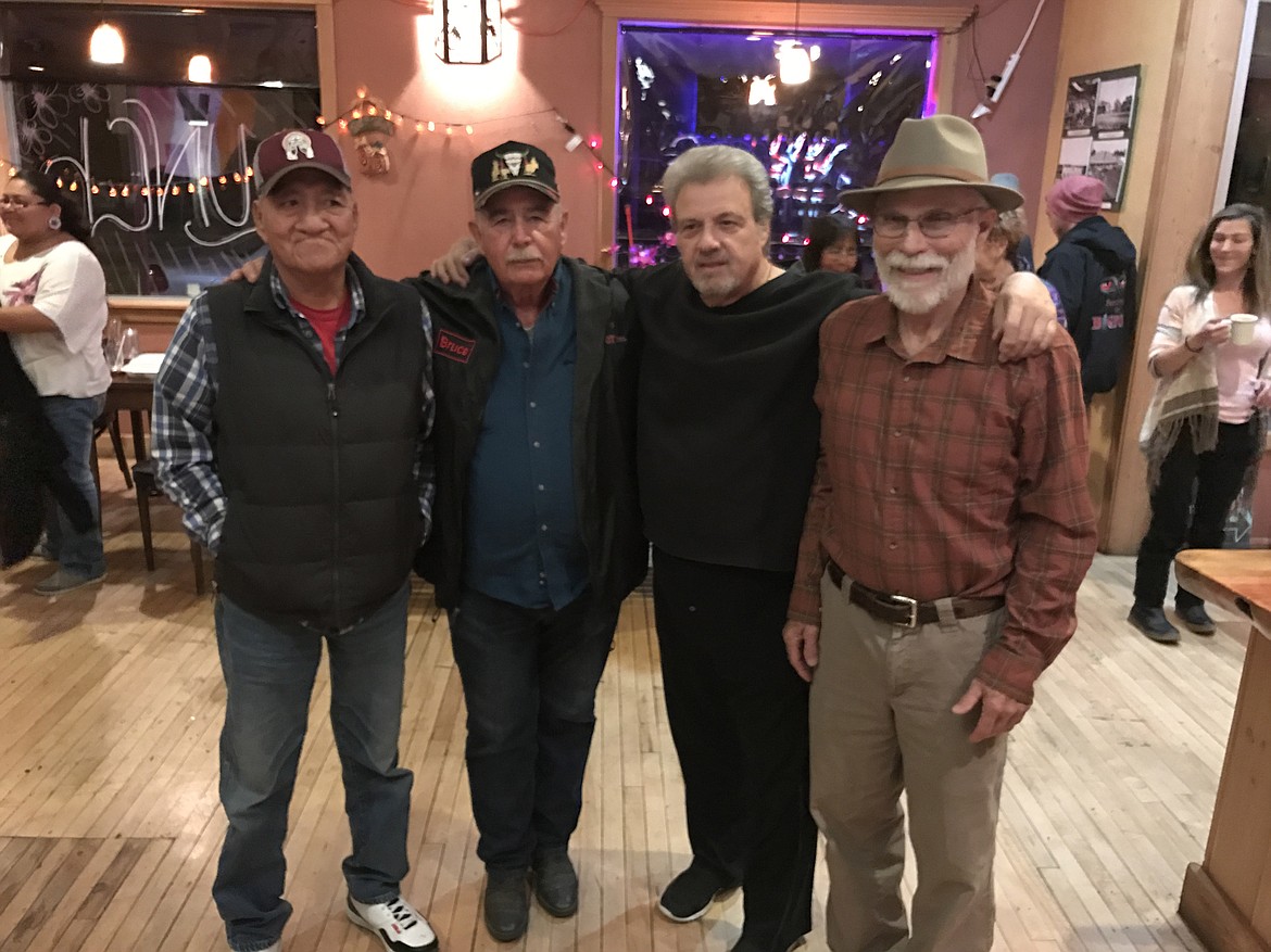 Bigfoot researcher Tom Biscardi, third from left, is pictured with Blackfeet tribal leaders Maynard Kicking Woman and Bruce Schildt, along with William Stewart, right, who is partnering with Biscardi on the Bigfoot hotel/museum planned in East Glacier. (Photo courtesy of Bigfoot Project Investments Inc.)