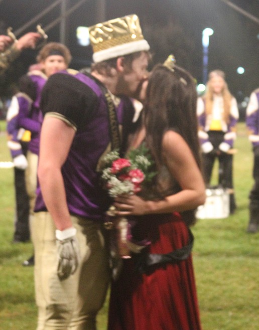 With all of the pomp and circumstance of homecoming, the crowd was treated to a very romantic moment when real-life couple Ryan Morgan and Sierra Rice were named homecoming king and queen during the halftime of the game.