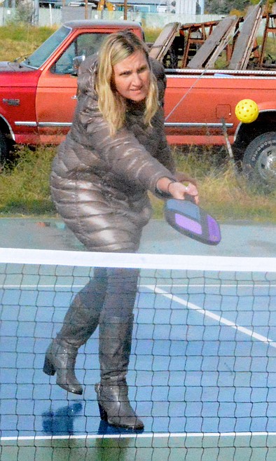 Polson Mayor Heather Knutson never played the game of pickleball before the unveiling of the new tennis courts Fridayafternoon at O’Mally Park in Polson.