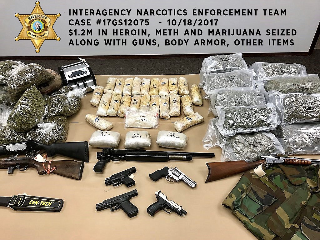 Grant County’s Interagency Narcotics Enforcement Team (INET), which consists of detectives from the Grant County Sheriff’s Office, Moses Lake Police Department, Ephrata Police Department and Washington State Patrol, recently served warrants on homes and storage units around the county.