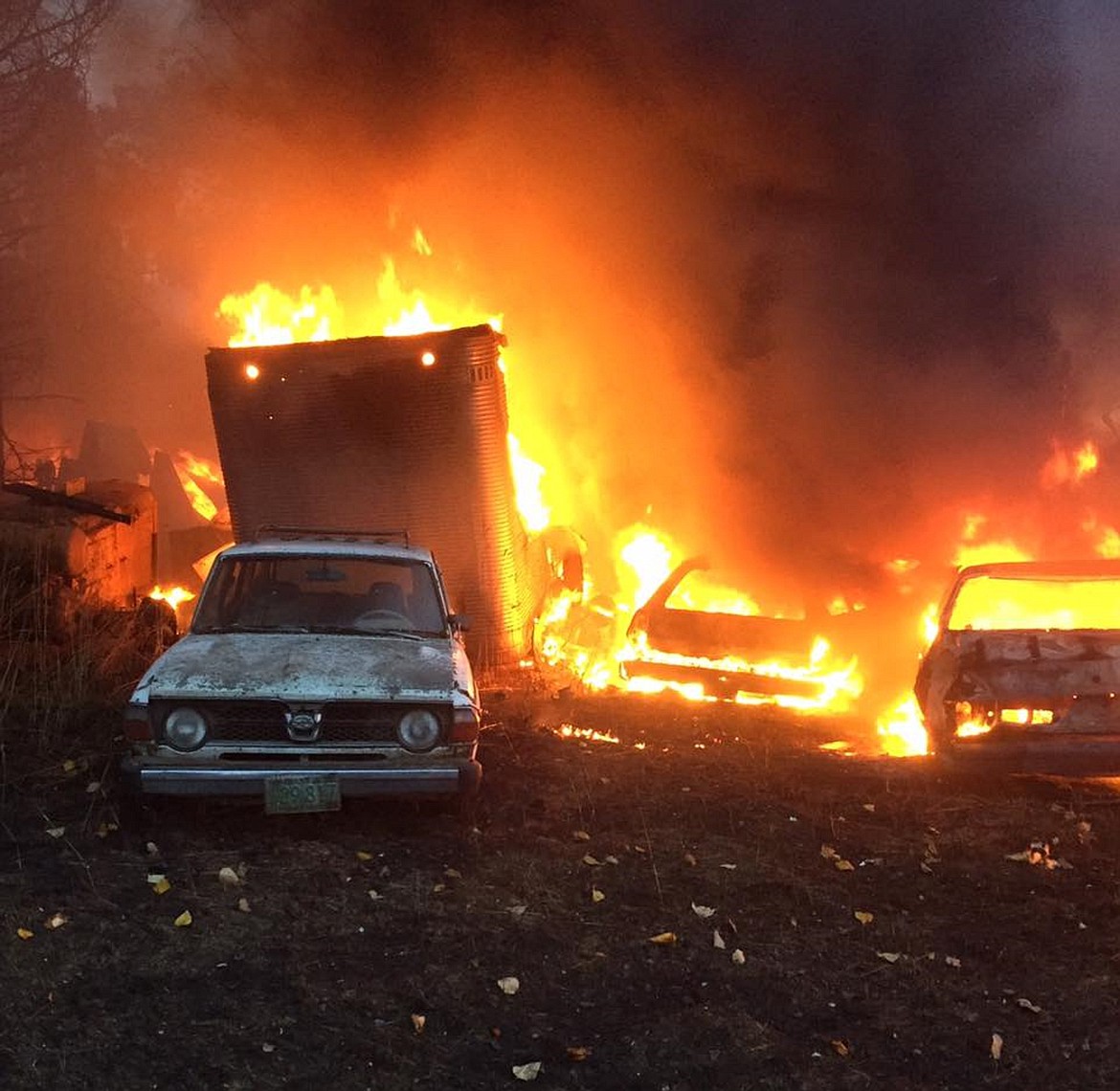 The department received more than 10 calls in a three-hour period, and Selkirk Fire Chief Ron Stocking said the majority of those calls were wind related. One of those calls was a report of a fire in the 10100 block of Lakeshore Drive in Sagle, which destroyed several cars and a large pole barn.
