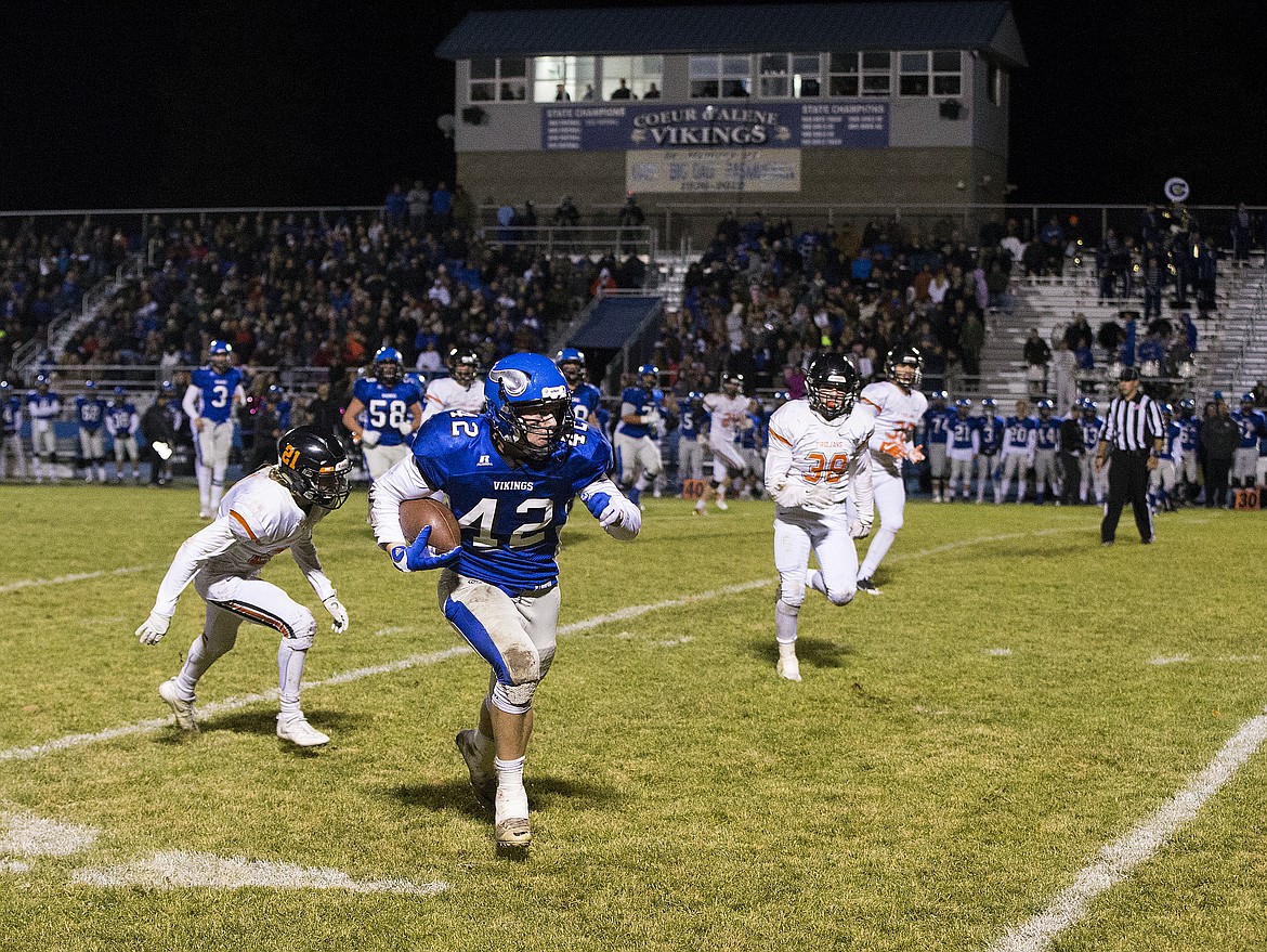 Coeur d’Alene (7-2, 3-0 5A IEL), earned a first-round bye in the state 5A playoffs, which begin next week. The Vikings will host either Meridian (4-5) or Madison (6-3) in two weeks in a quarterfinal game.