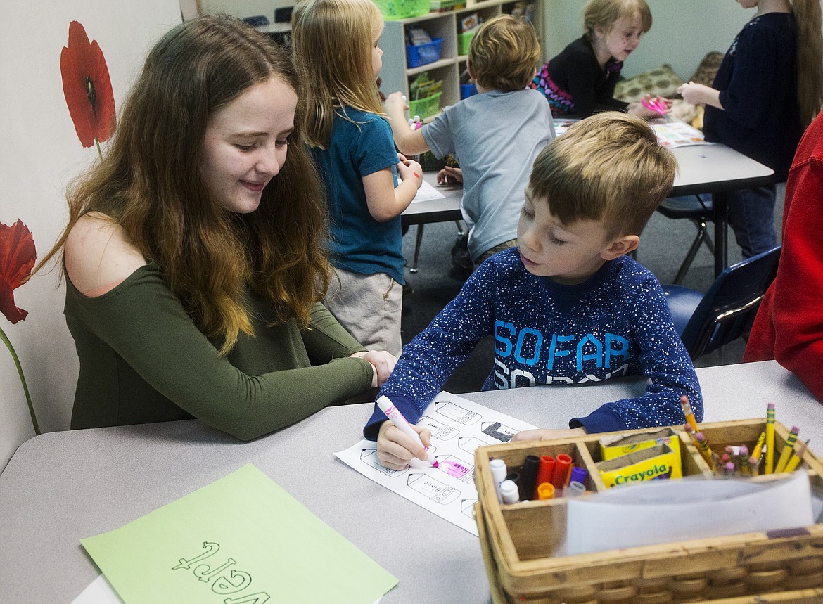 "It’s great because it really makes my kids focus on their pronunciations," Maurer said. "It’s great to see the older kids interact with the younger kids. No cell phones, just coloring sheets."
