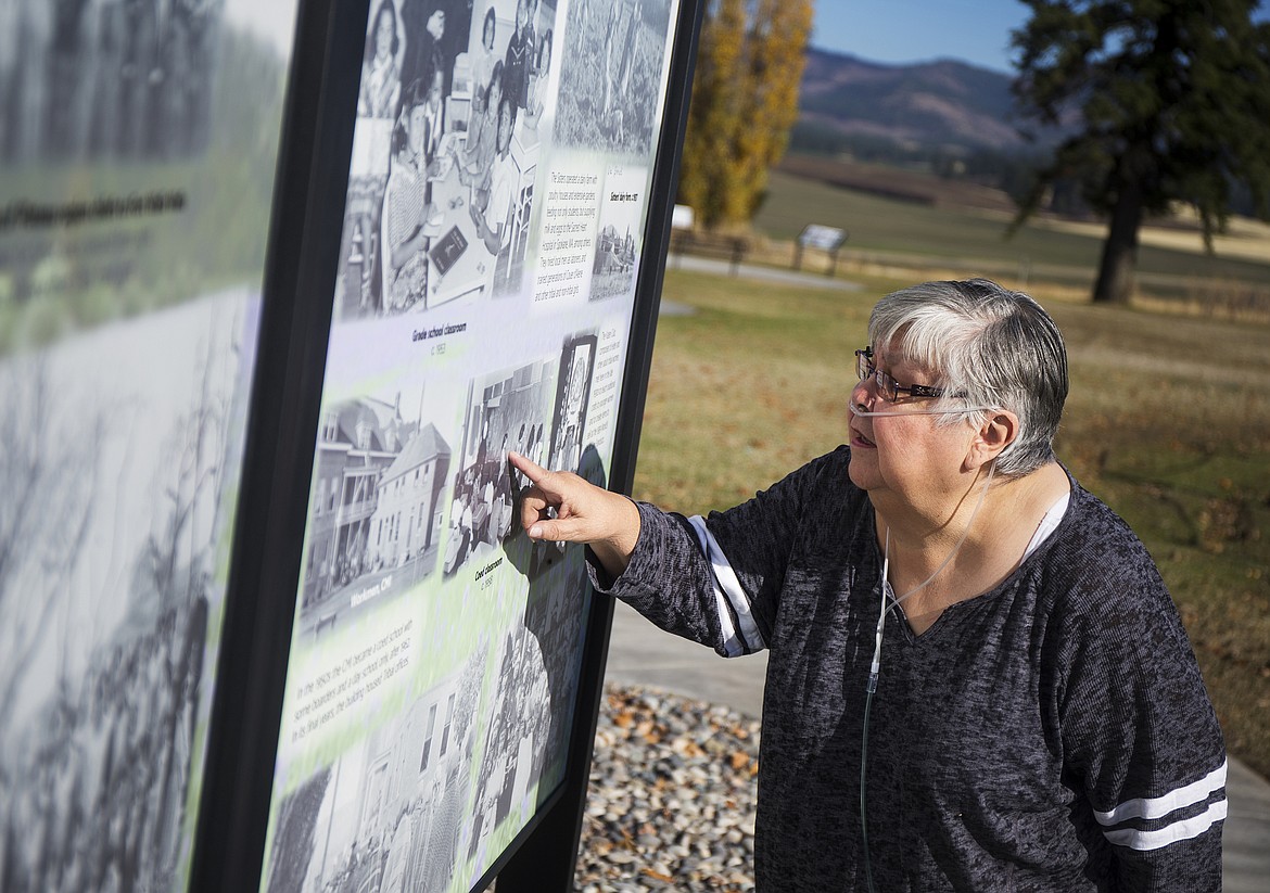 DeSMET — Margie Johnson touched a display of a black and white photo of American Indian children dressed in traditional regalia.
