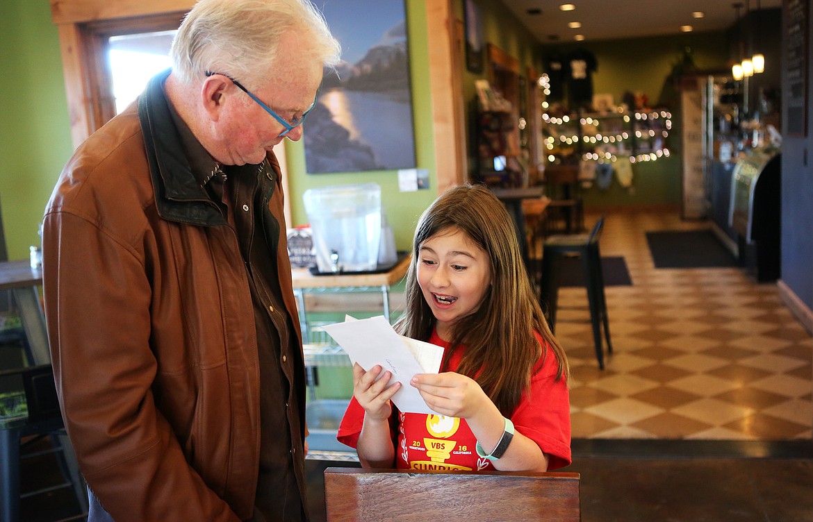 Courtney Rhoades thought she was just going to lunch with her mother last Friday. But when she arrived at Glacier Perks Coffee House in Lakeside, there was a couple waiting there especially for her.