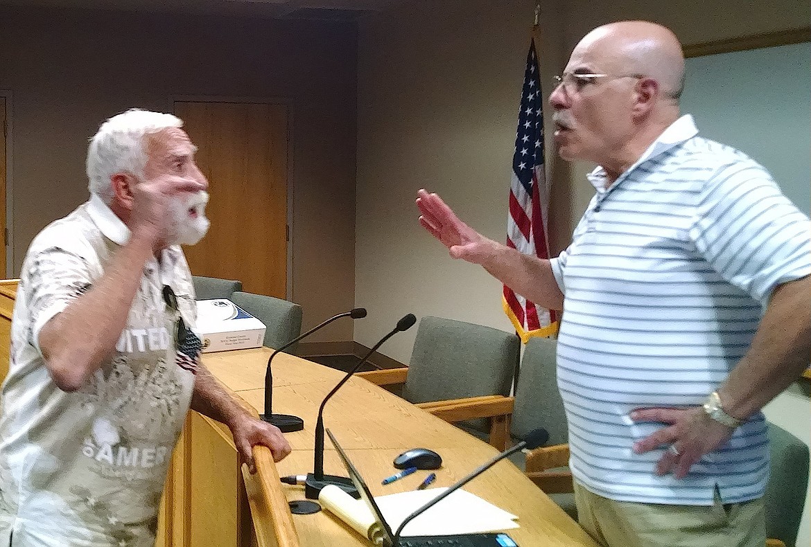 A heated exchange ensued between Commissioners Marc Eberlein and Bob Bingham when they attempted to trim the $88.05 million budget to avoid the tax increase.