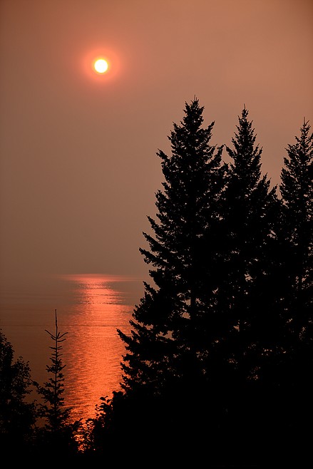 A smoke-filled sunset gives a deep red cast to the reflections on Flathead Lake on Sunday, September 3 from Woods Bay.(Brenda Ahearn/Daily Inter Lake)