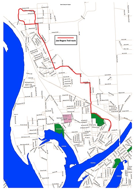 The trail dedication is scheduled to take place in the Wallenstien Theater at BBCC from 10 a.m. to 12 p.m. The Joe Rogers Trail extends from the Big Bend Community College loop trail, down Patton Boulevard to Randolph Road, down the trail to state Route 17, along Grape Drive to the Lauzier Athletic Complex and ending at Valley Road, where it connects with the Joseph K. Gavinski Trail.