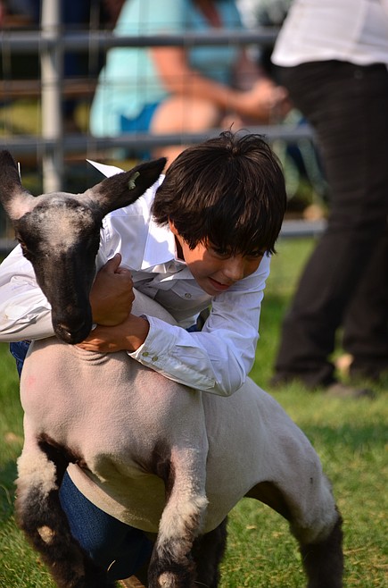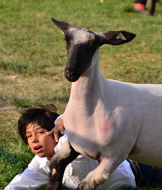 Young Jacob Hutchins from the Southside Sparks Plains club found a bit of sunshine through the clouds during his class with his show lamb.