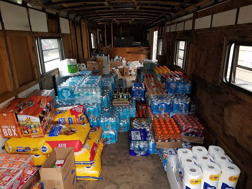 The community did not disappoint. “The response has just been overwhelming,” said Kimball, as the deadline time of 4 p.m. on Thursday neared. “In three days we have gathered over 100 cases of water, 500 pounds of dog food, 20 cases of Gatorade. I’ve collected over $600 in cash donations. We have fresh fruit, toiletries, canned goods. We have personal hygiene products. You name it, it’s here.”