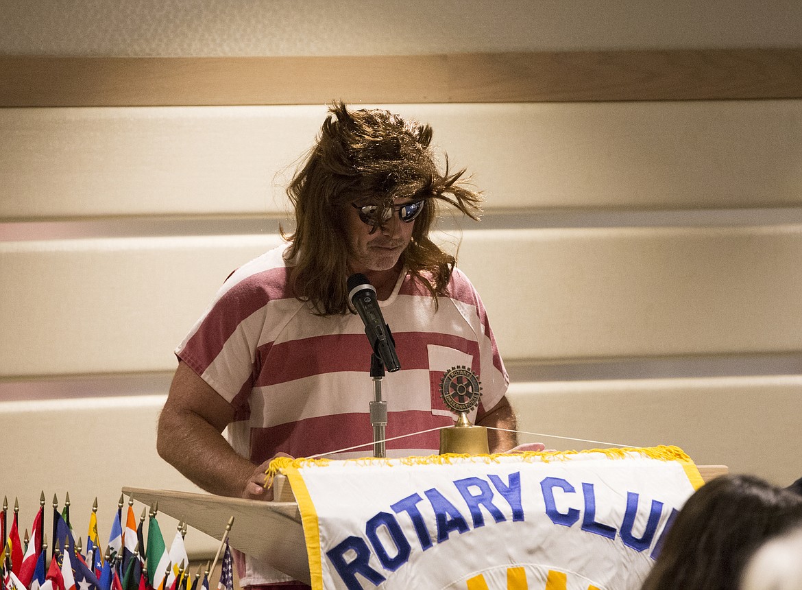 Under the disheveled wig and dark sunglasses, that man was past Rotary president Matt Lyman, and his "Billy Bob" persona had a new approach for this year's annual Rose Sale.