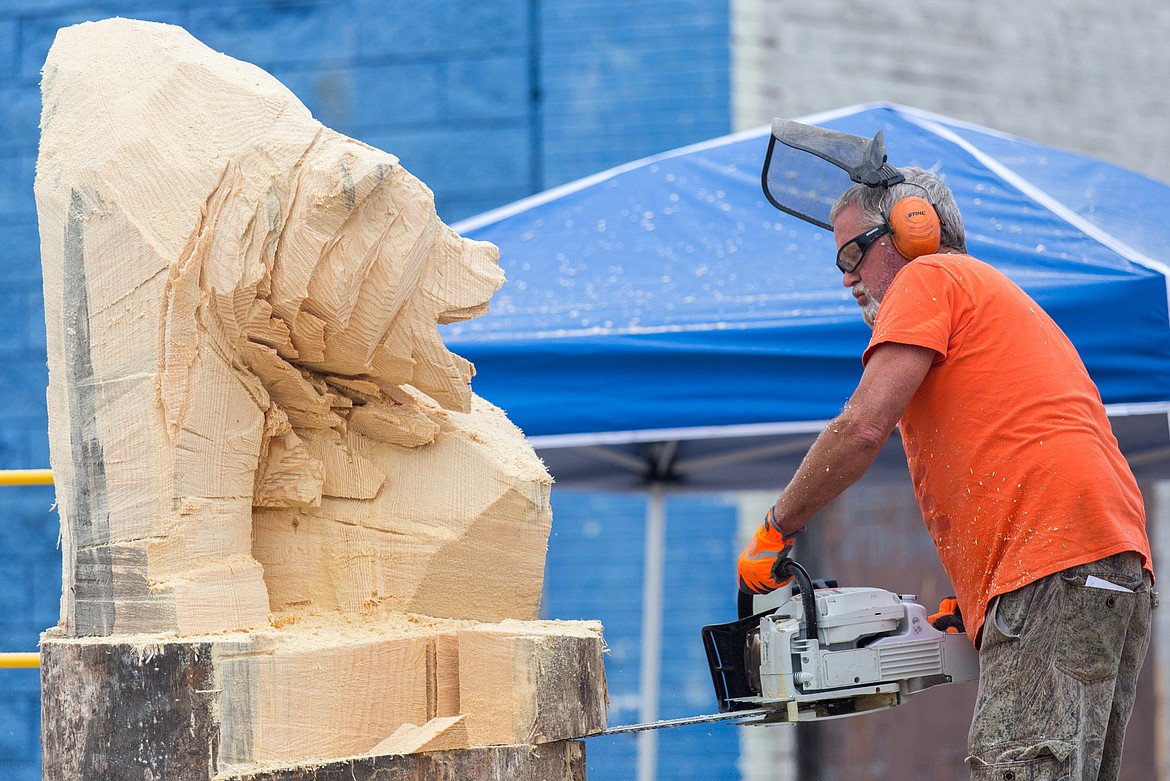 Kootenai Country Montana organized Libby’s first chainsaw carving championship, which took place Friday through Sunday at the north end of Mineral Avenue. Spectators were able to watch local artist Ron Adamson and 13 other competitors work on more time-consuming competition sculptures as well as so-called “quick-carve” items hewn from smaller pieces of wood.