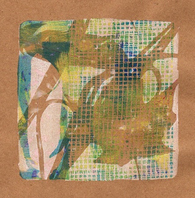 Along with the inks, a brayer (essentially a rubber roller), and any type of flat object that creates a barrier between the plate and the paper (such as stencils, leaves, mesh, etc.) are used. Painting directly on the plate is another traditional technique, and the most “pure” method of monoprinting. All of these design applications will result in colorful, unique pieces using a creative process.