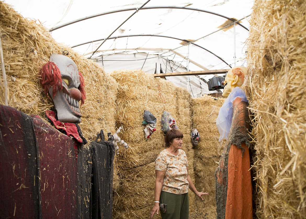 When the tunnel opens, Ruth takes tickets and Ed organizes visitors and whips up the kettle corn. They turn the front lines of scariness over to the spooks, a lunging devil, clowns, spiders and other characters to enjoy the screams.