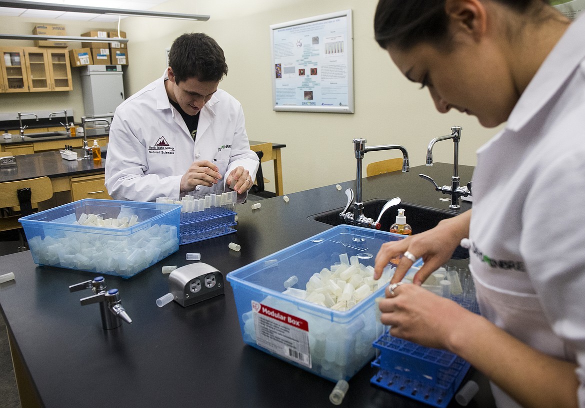 The North Idaho College lab technicians were in a frenzy as they raced to place caps on sets of test tubes. Buffaloe grabbed handfuls of caps, knocking them all over the lab counter as Melendreras capped her tubes swiftly and diligently.