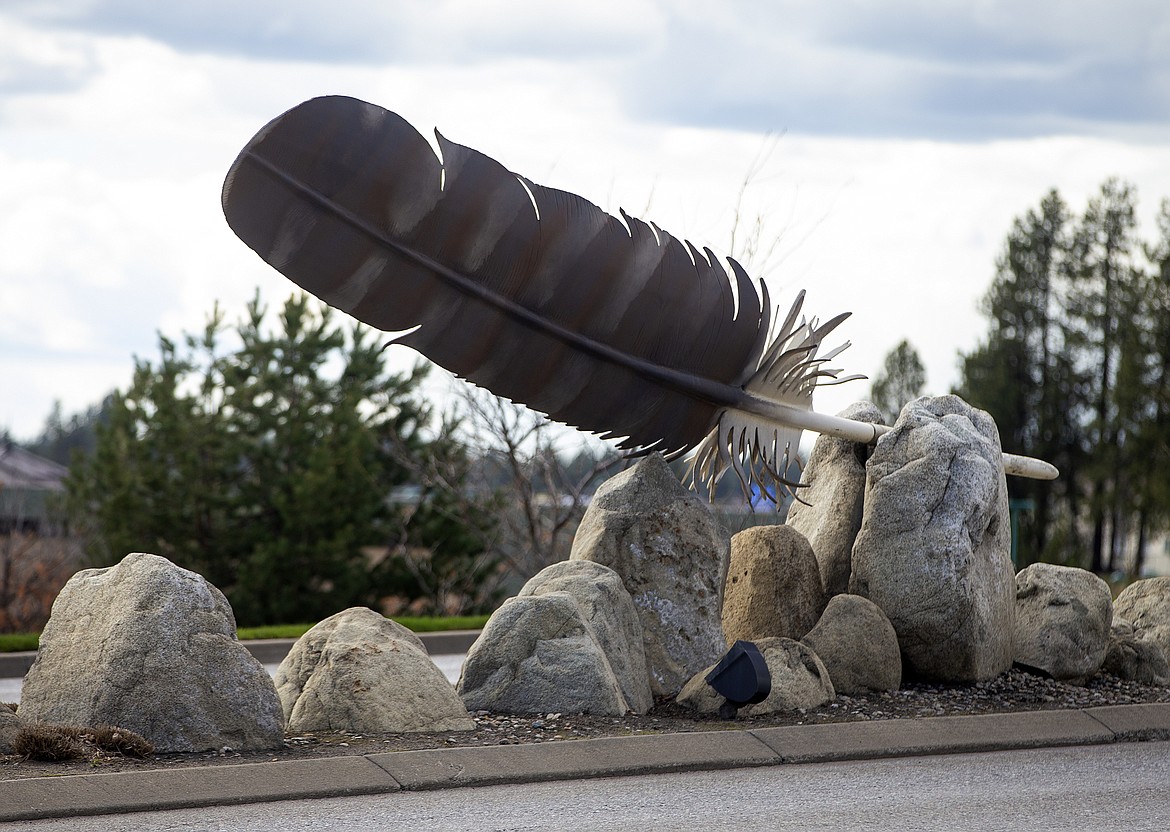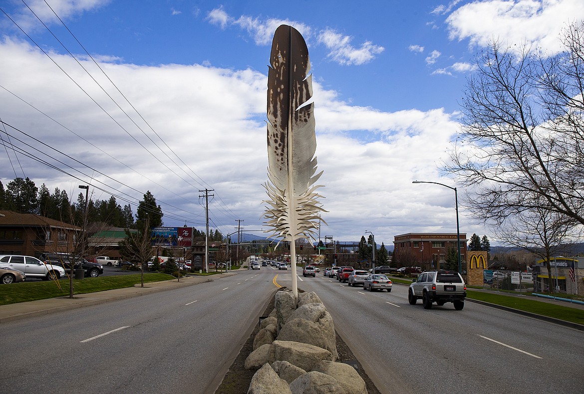 To the humans who visit and live in Coeur d'Alene, the eagle and osprey feather sculptures on Northwest Boulevard are also quite impressive in size.