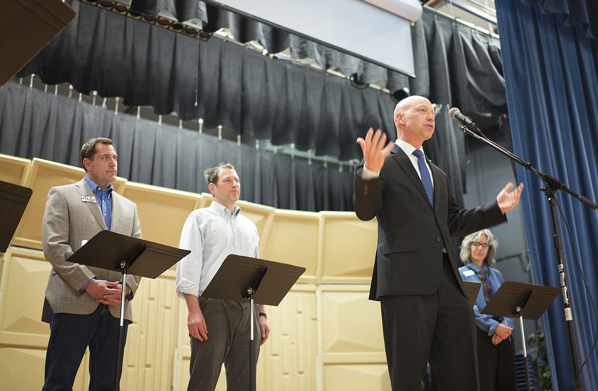 Several dozen guests turned out for the event, where moderator Mark Holston read audience-submitted questions to Kathleen Williams, Grant Kier, John Heenan, John Meyer and Jared Pettinato, then gave them each a brief period to respond.