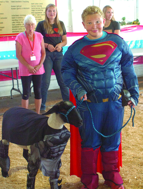 Davis topped two other competitors in the Project Costume Contest held Friday afternoon at the fairgrounds in Ronan. This year, he dressed himself in a Superman costume. With help from his mom, Jennifer, he tailored a Batman outfit to fit his fair-showing sheep, Storm.