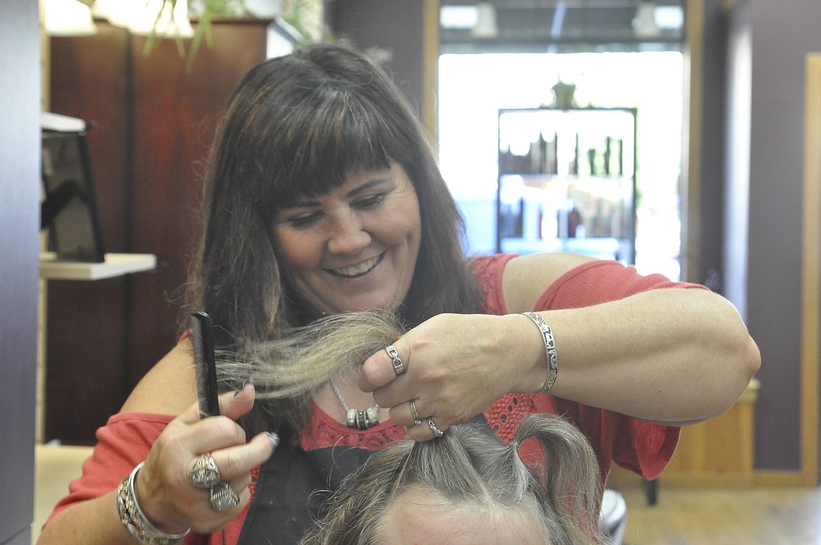 Cutting his hair was cosmetologist Lisha Fitzpatrick of Main Ideas Salon, 217 Main St. in Polson.