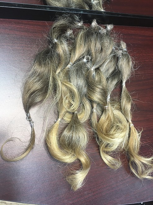 Twelve small bunches of hair measuring 10 inches long were donated.