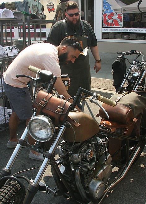 Mat Wintzer, Coeur d'Alene, was impressed with the leatherwork of Craft and Lore attached to a 1979 Yamaha motorcycle.