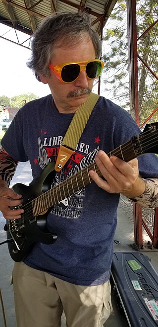 Grooving with his electric guitar before and after the show, Boundary County Library Director Craig Anderson sported the rock and roll theme, including fake tattoos down both arms.