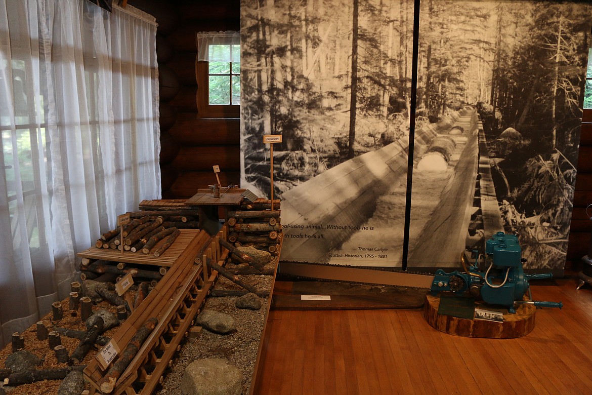 For the main exhibit this summer, the museum is featuring logging, which was the basis for the annual Priest Lake Heritage Series. The four presentations focused on early logging in Priest Lake, the history of Hill's Resort, logging after World War II and the Diamond Match Company, and the history of Elkins Resort. In the museum, a model of the Indian Creek flume, built by museum association board member Don Widman, is situated in the original living room of the cabin. The main exhibit also includes an array of photographs and other artifacts documenting the history of logging in Priest Lake. The living room exhibits are rotated every two years, Rydbom said, so it will still be up next year.