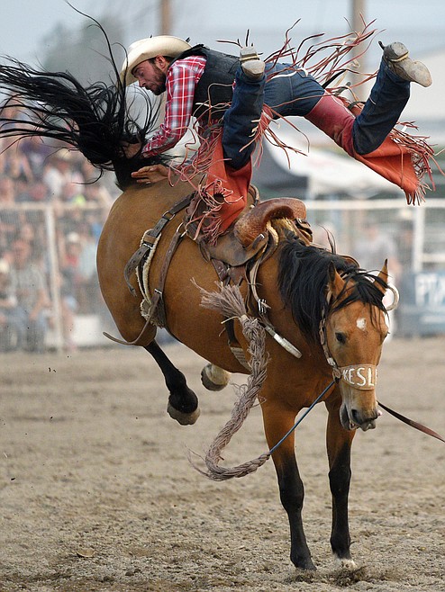 Steven Dent cashed in on the final night of the Northwest Montana Fair PRCA Rodeo with some high-point rides for a dandy pay check.