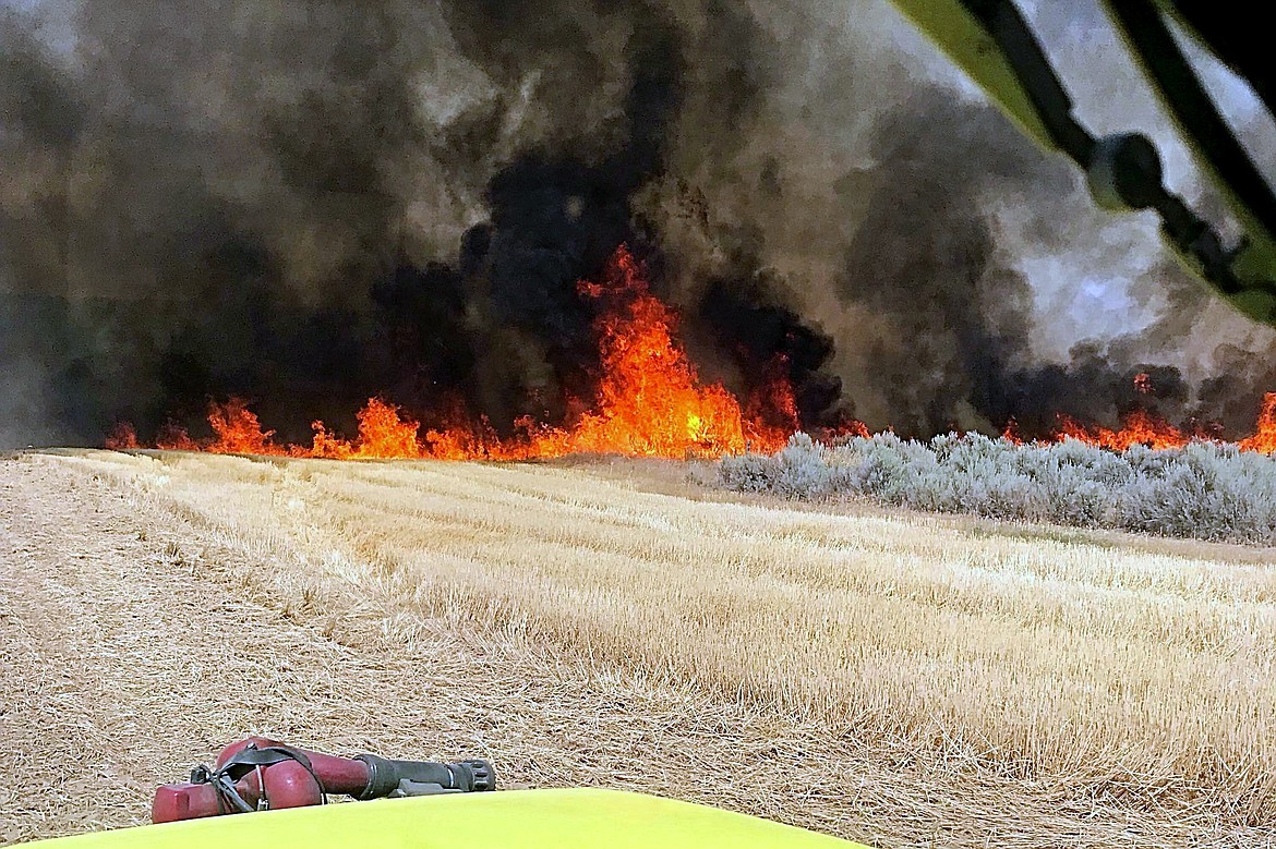 The fire broke out Thursday afternoon in the area of Overen Road and Road L Northwest as a result of malfunctioning farm equipment. Grant County Fire District No. 3 was initially dispatched to the blaze, which was burning mainly wheat stubble and brush, and a farmer’s disc stymied the wildfire’s growth until firefighters arrived.