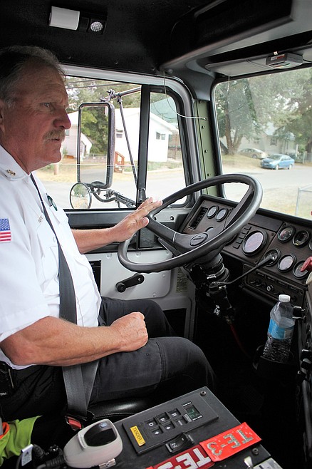 Inside the truck is a panel filled with switches and buttons and is labelled TE 3 for “water tender 3.” A much-needed piece of equipment as the fire season is in full swing, and several local fires have kept crews busy over the past few weeks with dry condition and hot temperatures in the forecast.