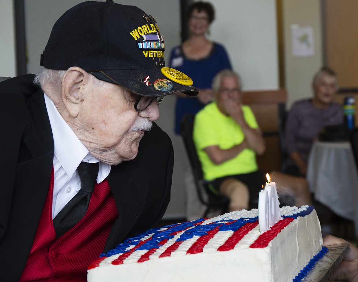 It was served at the birthday celebration attended by 70 people, many of them veterans and all of them appreciative of Hyde’s standing as a 100-year-old former GI.
