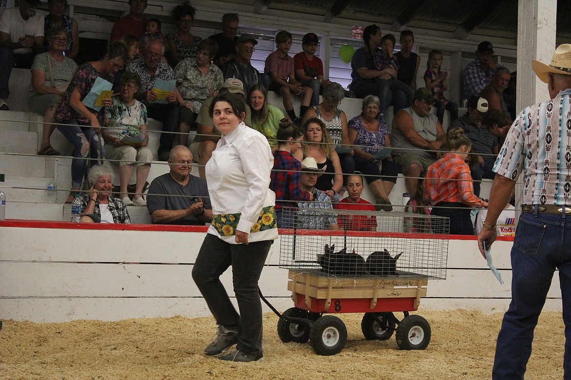 Cheyenne Cada paraded her three Grand Champion rabbits around the auction arena, selling them to Carter Country.