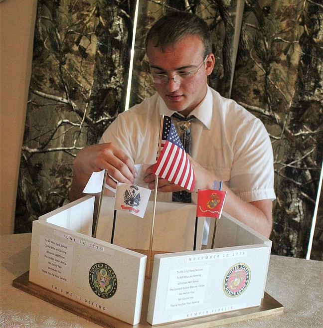 His father, Michael Taapken, served in the Marines and said he is very proud of Jordan and supports the project. They have already spoken to representatives from each branch about their idea and have their permission to proceed. The model they made was created from real granite pieces donated by Direct Source in Missoula. The granite walls are the most expensive part of the project with them running approximately $50 per square foot.