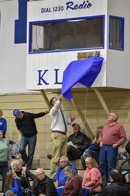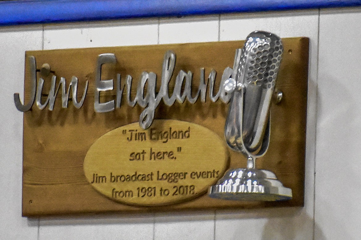 Jim England spent almost 40 years calling Logger basketball from the KLCB booth that hangs above the bleachers, and fellow broadcaster — and fellow retired educator — Jim Mee spearheaded the creation of a plaque to commemorate his time there.