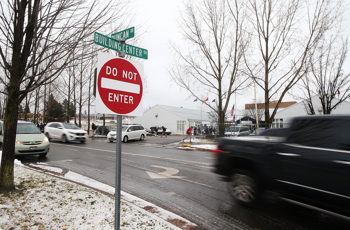 Part of the problem, said Coeur d’Alene’s city engineer Chris Bosley, arises when drivers — after dropping off or picking up students — attempt to turn left onto southbound Building Center Drive. The turn is a choke point that many parents try to avoid. Instead of heading south, motorists turn north and then attempt to make a U-turn, or they use private driveways and roads to turn around, adding to the confusion and congestion.