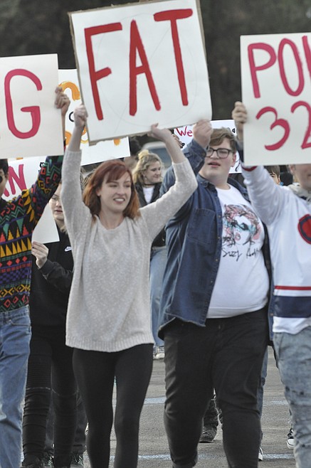 At 1:20 p.m. on Tuesday, Dec. 4, about 40 high school students walked around the high school parking lot, circling back into the school library where they were able to discuss issues.