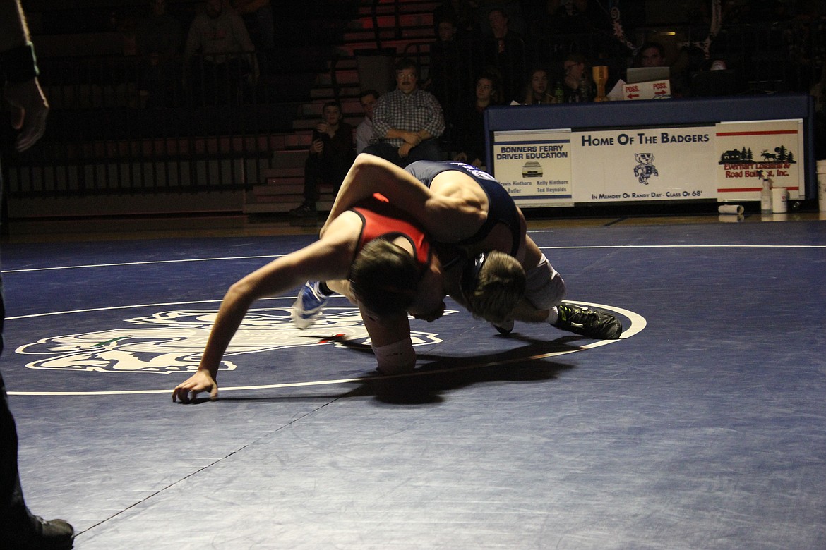 BONNERS FERRY — With a cheering crowd backing his every move, Bonners Ferry wrestler Eli Richards recorded a pin in the final match, providing the Badgers with the winning points in their Dec. 4 dual meet against visiting Sandpoint.