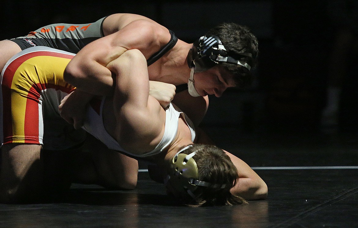 98 — Riley Pleninger, Havre, md. Theron Tate, Lake Stevens, 10-0. 106 — Rene Pierre, Polson, p. Adrian Delgado, Hermiston, 1:14. 113 — Donnie Krissak, Bethel, md. Waylon Wilson, Tonasket, 9-0. 120 — Jeff Friedman, Lakeside, d. Conor Goucher, Ortin, 3-2. 126 — Maximus Zamora, Moses Lake, md. Riley Buth, Mt. Spokane, 10-2. 132 — Fin Nadeau, Flathead, d. Derick Soto, Kelso, 9-3. 138 — Bryson Anderson, Orting, d. Reece Eckley, Sentinel, 15-8. 145 — Wyatt Schrader, Orting, d. Mathias De La Rosa, Post Falls, 5-2. 152 — Gunner Giulio, Coeur d’Alene, d. Isaac Duncan, Camas, 8-4. 160 — Colton Boettcher, Lakeland, d. Seth Nutting, Lake City, 5-4. 170 — Britton Needham, Moscow, d. Gaje Caro, West Valley, 5-3. 182 — Joey Follini, Timberlake, d. Dylan Lalone, Orting, 4-1. 195 — Jacob Vincent, Lake Stevens, d. Hunter Oles, Lakeland, 3-2. 220 — Tanner Cassell, West Valley, d. Elijah McCann, Ferris, 3-1. 285 — McKinnley Franklin, Kelso, d. Trace Franks, Mead, 9-2.
