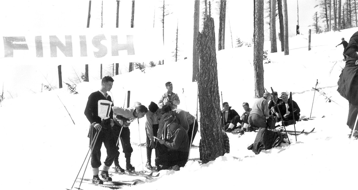 “Hosting the State Championships in 1939 was an epic story,” commented FVSEF Executive Director Tim Hinderman. “Eighty-six competitors from 10 schools around the state traveled to Whitefish and then hiked from town up to the old Hellroaring Ski Club cabins — there was no road yet. They spent two nights camped out at the cabins and two days hiking up and racing on what today is Chair 2 terrain. And equally amazing — over 400 spectators made the same trek from town to watch this first-time event!”