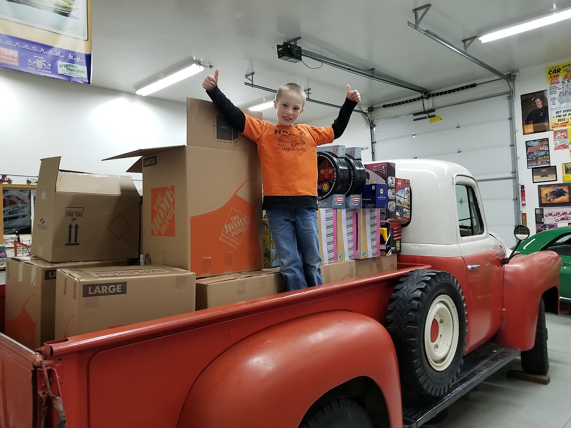 At the event, which also features a hotrod show outside the Colby home, Carter greets everyone and thanks them for coming. He then takes the donated toys and places them in an old International pickup (which he claims will be his first car when he gets his driver’s license). As the truck is filled with toys, Carter helps his mom sort and box them for later delivery to “The Bear’s” Toys for Tots drive.